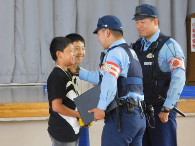 本日3校時目、南相馬市警察署 生活安全課の方・スクールサポーターの方々にご協力いただき、不審者に備えての防犯訓練を行いました。児童は校長先生からの緊急放送を合図に避難場所の体育館に向けてスムーズに避難することができました。