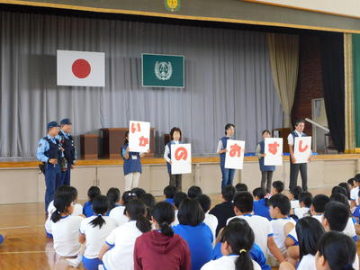 全体指導ではスクールサポーターの方々の劇や「いかのおすし」について確認することで防犯の意識を高めることができました。また、手をあげて発表したり、劇に参加したりして積極的に自分の身を守る方法について学習することができました。