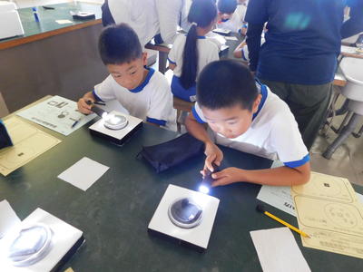 3年生は放射線の飛び方を予想し、霧箱を作って実際に放射線を観察しました。子どもたちは初めて見る放射線の飛跡に興味津々で、意欲的に学習に取り組むことができました。