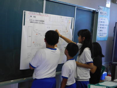 6年生は事例をもとに風評について話し合いました。いままで放射線について学んできたことから、どんな助言ができるかを考え、各班ごとに考えを発表することができました。