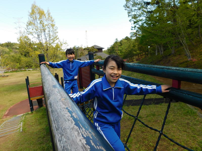 1・2年生は昨年と同じく、高見公園へ向かいました。徒歩での移動でしたが元気いっぱいで学校を出発し、無事目的地に着くことができました。1年生にとって一日中、学校外で過ごす初めての経験でしたが、大きなけがも無く楽しく過ごすことができました。