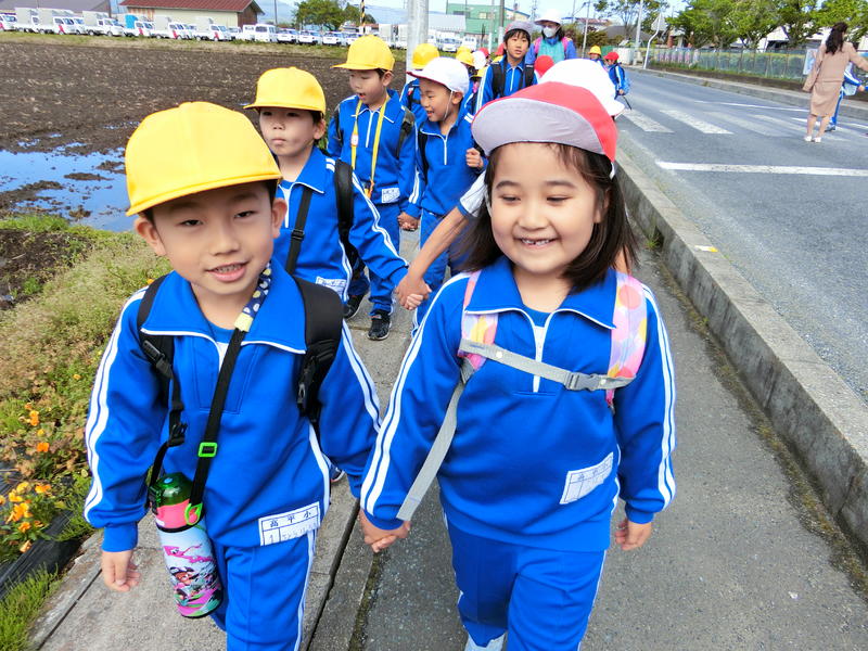 本日は遠足に行ってきました。子どもたちの願いが届いたのか、天候にも恵まれ、昨晩までの雨が嘘のようでした。晴天のなか子どもたちは元気いっぱいで目的地に向かいました。