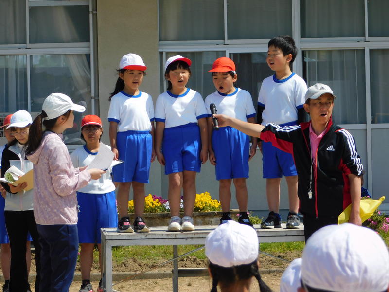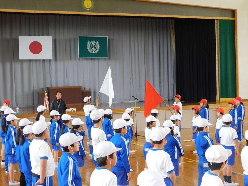 昨年度は雨で体育館でのスタートとなりましたが、今年度は五月晴れの空が美しく、子ども達は清々しい気持ちで開会式に臨むことができました。