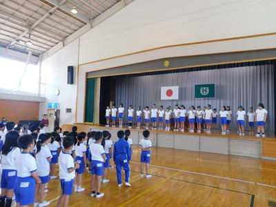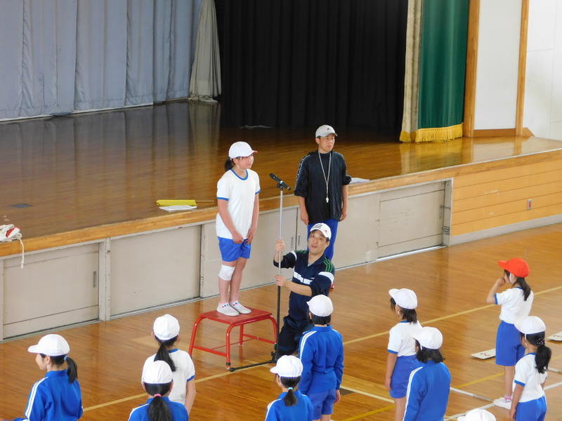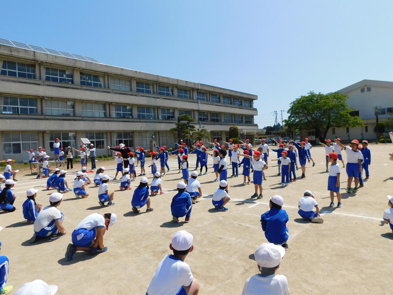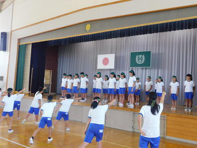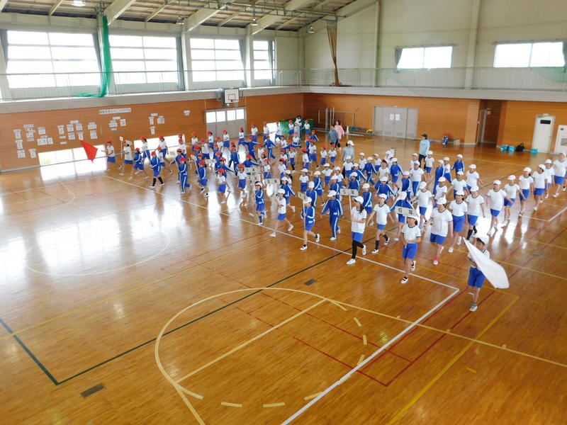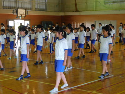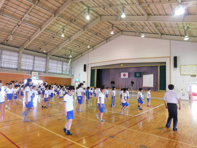 2校時目に第2回目となる運動会全体練習を行いました。今回は雨天時を想定して体育館で練習しました。校庭での練習とは勝手が違うものの、すぐに対応しどんどん上達していきました。