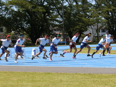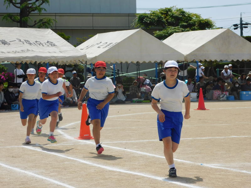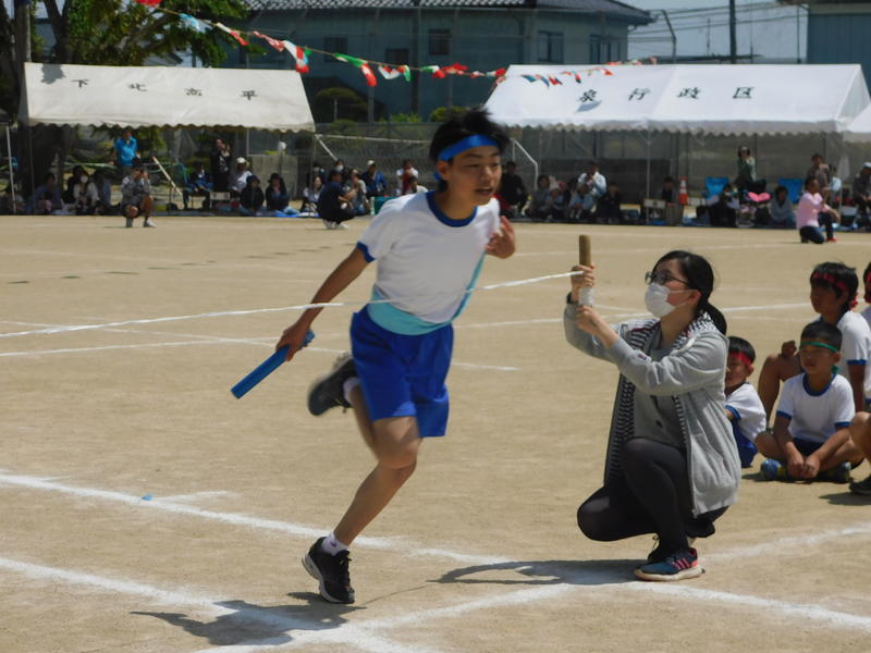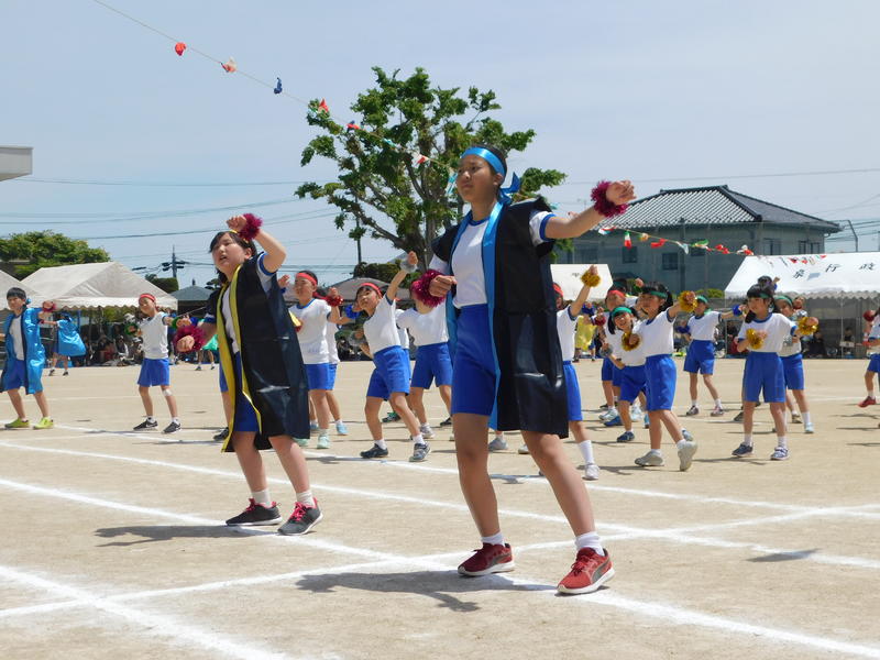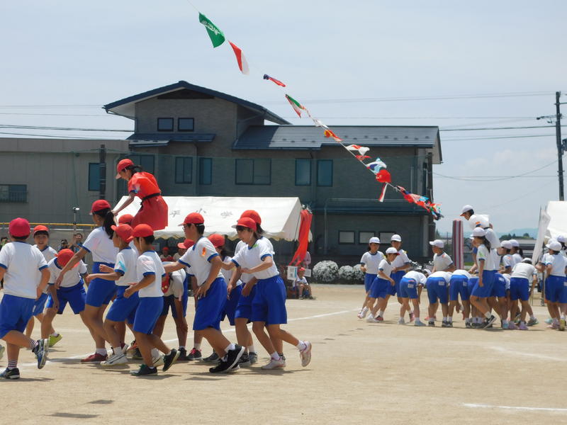 午前中の終わり頃から、午後にかけて団体種目が続きました。リレーや全校ダンスなど心を1つにしてがんばりました。「キッズソーラン」では元気な踊りを保護者の方や地域の方々に披露することができました。最後の種目の「紅白対抗リレー」では代表となったメンバーが堂々とした走りを見せていました。