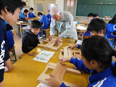 立派な木工作品に、児童たちは大満足。森林組合のみなさん、本当にありがとうございました。