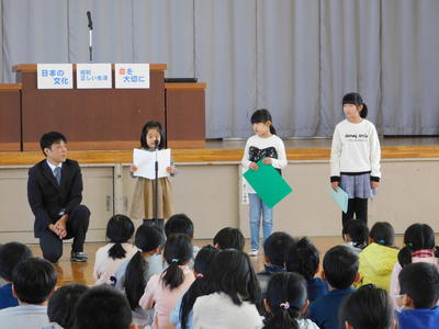次に、1・3・5年代表児童の2学期の反省と冬休みの計画発表がありました。