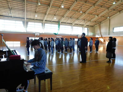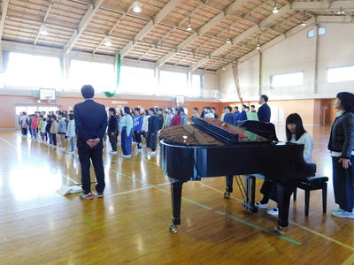 最後に、児童・教職員で校歌を歌い、第3学期始業式を閉じました。