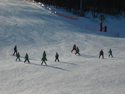 1日目は、蔵王少年自然の家のゲレンデで、6班に分かれスキー練習をしました。スキーの経験があるのは一部の児童で、ほとんどはこの日が人生初めてのスキーでした。スキーの講師の先生に基礎から教えていただき、浜通りではなかなか味わえない雪を楽しみました。出会いのつどいでは係の児童がしっかり運営し、協力してベッドメイキングを行い、レクリエーションでは大盛り上がりでした。
