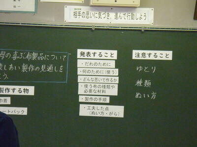10月6日(水)には上記の「第二次研究協議会家庭科部会」が本校において開催されました。これは,相馬地方小学校教育研究会より3年間の指定を受け,家庭科の研究を進めていくものです。今回は,6年生の家庭科・題材名「思いを形にして生活を豊かに」の授業を公開しました。相馬地方の先生方が来校し、活発な協議が行われました。