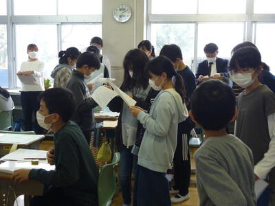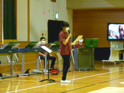 15日(金)市民文化会館ゆめはっとで行われる「原町区小中学校音楽祭」の壮行会を行いました。本校からは,5年生14名が参加します。残念ながらコロナ感染防止のため,無観客での開催になりますが,5年生間これまで一生懸命に練習を重ねてきました。その成果を本番でも十分発揮してくれるよう全校生で激励しました。14名と少ない人数ですが,壮行会では素晴らしい演奏を披露してくれました。本番が楽しみです。