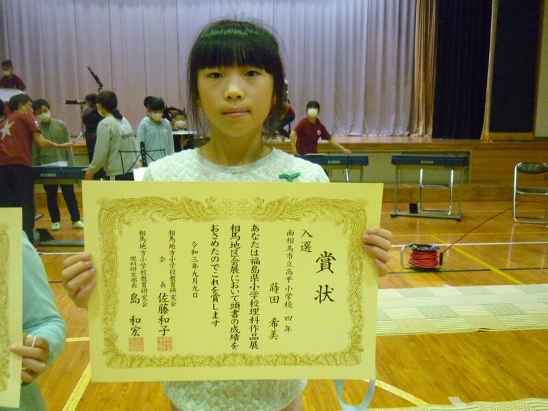 「令和3年度 小学校理科作品展」 入選 1年 佐々木千紗さん 入選 4年 蒔田 希美さん