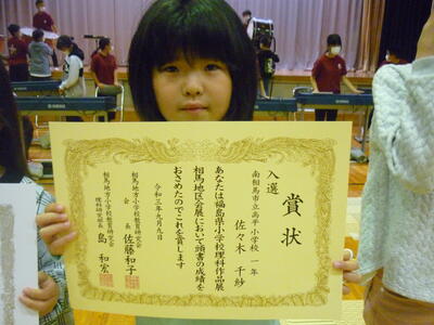 各種コンクールで受賞した児童へ賞状の伝達を行いました。子ども達は,夏休みの課題として一生懸命取り組み,よく頑張りました。本日は,3つのコンクール等で受賞した児童の代表へ賞状を伝達しました。これからもがんばってほしいですね。
