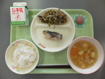 今日はみそ汁に入っているじゃがいもについてです。じゃがいもは,フランスでは「大地のりんご」と呼ばれるほど,ビタミンC,ビタミンB1,ビタミンB6,等のビタミン類を多く含みます。また,腸内環境を改善する食物繊維等も豊富です。じゃがいもに含まれる栄養成分の多くは,水溶性なので,スープにして煮汁ごと食べるか,蒸したり,焼いたりして食べると効果が高まります。今日のみそ汁にもじゃがいもの栄養成分がたっぷり入っています。残さず食べて,健康な体づくりにつなげられるといいですね。