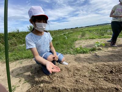 3・6年生は午後に花の種植えを行っています。3年生では畝を作るのが難しく,6年生に手伝ってもらっています。力強いスコップ裁きに思わず「6年生かっこいい!!」と声が上がり,6年生は誇らしげでした。「6年生になってから初めて言われました。」素直な感想が聞かれました。これからも活躍の場を作っていきたいと思います。