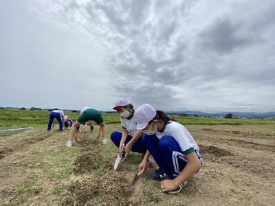 2020年6月18日 12時02分6年生は,豆の苗植えを行っています。昨年度よく育たなかった反省を生かして今度は苗まで大事に育てて植えています。あわせて,3年生のひまわりやジャガイモのところにも水やりをしています。優しい気持ちがあり,他学年の植物の様子も気になるようです。