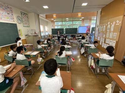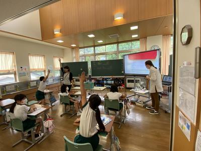 2020年7月7日 11時30分3年生は,外国語の専門の先生とALTの先生と楽しく学習しています。今日は,好きなものと嫌いなものを書いたカード当てクイズをしています。書いてある言葉を先生の後に続いて英語で発音し,誰が書いたカードかを当てようと真剣に考えています。