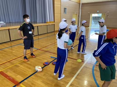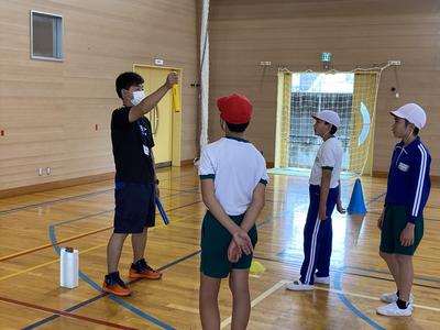 2020年7月7日 12時22分1・2年生に引き続き,6年生も専門の先生に教えていただいています。リレーのバトンパスについて,バトンの持ち方から,受け取り方,相手との間隔など細かなところまで教わりました。ウォーミングアップのバットを使ったリレーではたいへん盛り上がりました。。
