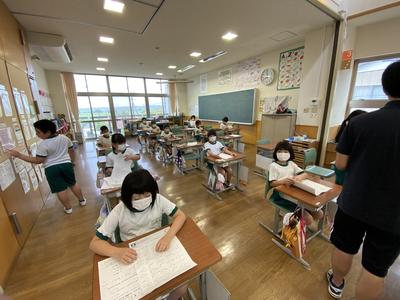 2020年7月8日 08時02分登校時に前が見えないくらいの雨が降りましたが,子ども達は元気に登校しています。前日の片付けや朝の学習,読書,清潔検査の準備にそれぞれの教室で過ごしています。