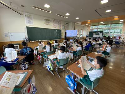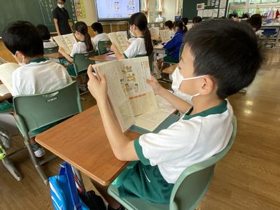 2020年7月16日 08時42分3年生の教室では,国語の授業が行われています。組み立てを考えて,報告する文章を作ろうということで,いろいろな人が工夫しながら働く様子について見つけ,友だちに紹介する文章を作る学習をしています。