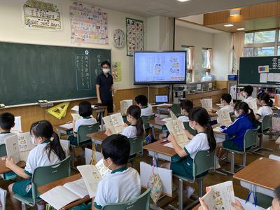 3年生の教室では,国語の授業が行われています。組み立てを考えて,報告する文章を作ろうということで,いろいろな人が工夫しながら働く様子について見つけ,友だちに紹介する文章を作る学習をしています。