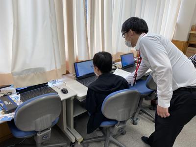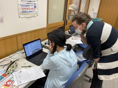 コンピュータ室では6年生が外国語の学習をしています。自分の興味を持った外国のことについて,インターネットを活用して調べ,シートにまとめています。今日は外国語の先生とALTの先生とICT支援員の先生と学校支援員の先生の4人体制で行っており,子ども達の疑問に即座に対応しています。