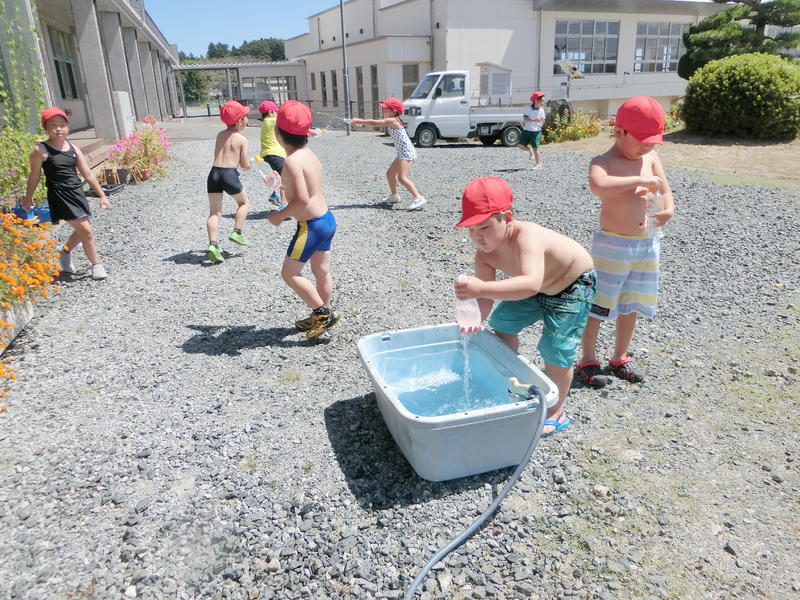 水着に着替えた子もおり、おおはしゃぎの1年生でした。