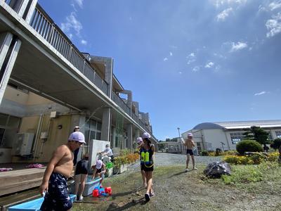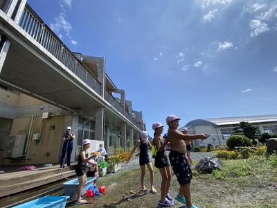 2020年9月3日 10時27分2年生は,外で水遊びをしています。昨日までの曇り空とうって変わり,今日はとても天気がよくとても楽しそうです。