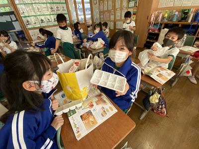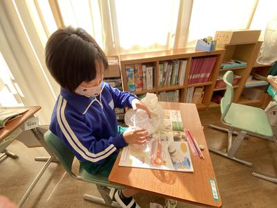 2020年11月17日 11時19分3年図画工作の学習では,それぞれ家から持ち寄った空き容器を使った小物作りが始まります。まずは,どんなものを持ってきたのかお互いに見せ合っています。どんな小物ができるか楽しみです。