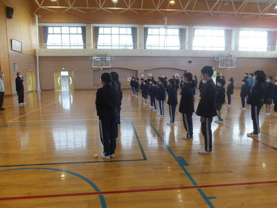 先月退職された用務員さんに代わって新しい方が今日から勤務となります。職員の紹介が済んだあと,全校生への紹介を行いました。朝早くからの清掃等で大変お世話になります。
