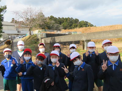 2020年12月7日 12時10分4年生社会は,地域の様子について校外学習をしています。今日は,古くからあり,校舎の前も通っている「七千石用水路」について,実際に足を運んで見学しています。元々は七千石堰(南相馬市鹿島区)から運ばれている用水路であり,別名御山堰とも呼ばれ,真野川左岸から取水して、幅50メートル、高さ1.5メートルで現在はコンクリート堰となっています。もともと御山及び白坂の水田に利用するために延宝年間(1673年から1681年。今から340年程前)に設けられた小さな堰でした。その後安政年間に、北郷代官の荒専八が堰の改修計画を立て、唐神、石の宮及び藤金沢の各ため池に掛け入れできるように、それまでの水路を一段高い所に通し、自然落差を利用したため池となりました。その結果、多くの水田を潤すことになり、七千石(約1万8千俵)も米が取れるといわれ、七千石堰,そこから伸びる用水路を七千石用水路と名付けられました。(県HPより抜粋)とても歴史のある堰,用水路です。