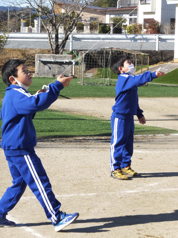 2020年12月22日 11時49分ぽかぽか陽気の校庭に、元気な1年生が駆け出していきました。