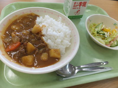 今日の献立は,ビーフカレー,みかんサラダ,牛乳です。