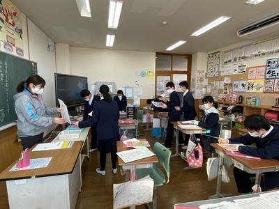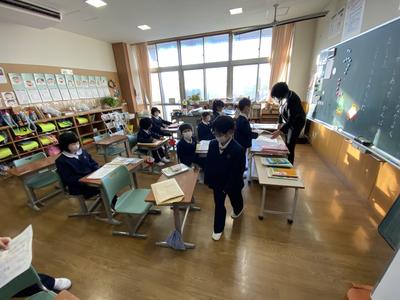 各学年とも,冬休みの宿題や通知票を担任の先生に提出していました。この冬休み,大きな事故やけがもなく安全に過ごせたようでなによりです。