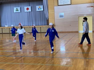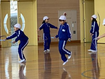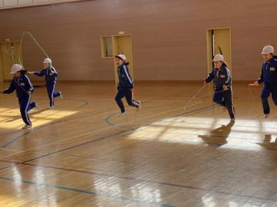 2021年1月28日 10時19分3年生体育では、体育専門アドバイザーの先生に来ていただいて、縄跳びを学習しています。身体ほぐしの時間にも縄跳びを使っていろいろな跳び方に挑戦しています。かけながら飛んだり、足踏みを間に入れて跳んだりと、楽しんで学習しています。