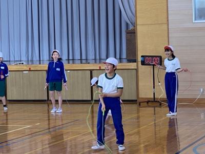 3年生体育では、体育専門アドバイザーの先生に来ていただいて、縄跳びを学習しています。身体ほぐしの時間にも縄跳びを使っていろいろな跳び方に挑戦しています。かけながら飛んだり、足踏みを間に入れて跳んだりと、楽しんで学習しています。