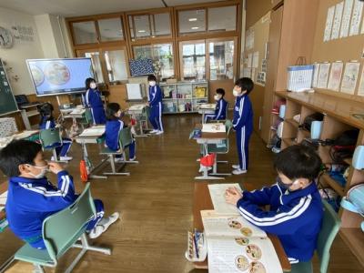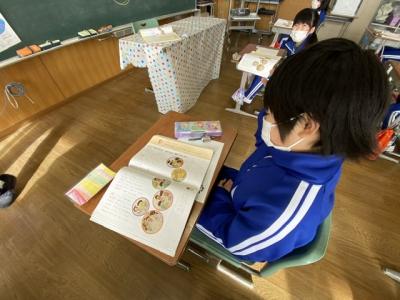 2021年1月28日 10時31分2年生道徳では、はたらくことの意味について学習しています。登場人物の気持ちについてお互いに意見を出し合って、深めていました。普段の掃除においてどんな気持ちだったか、振り返ることができました。