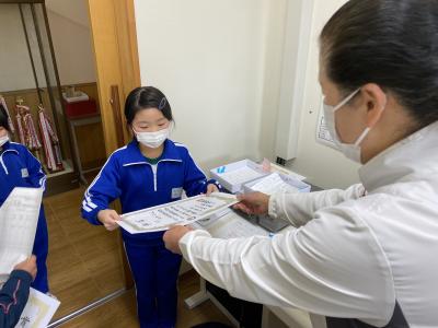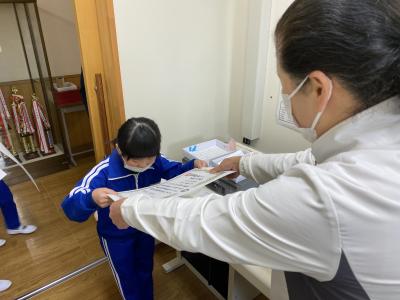 2021年2月24日 12時57分お昼の放送で表彰を行いました。今日は,PTA子どもの災害事故防止習字展の入賞者です。入賞された皆さんおめでとうございます。