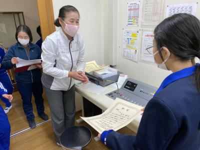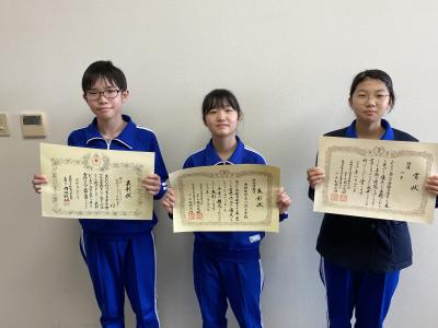 お昼の放送で,県書きぞめ展と青少年赤十字の作文の表彰を行いました。入賞された皆さんおめでとうございます。