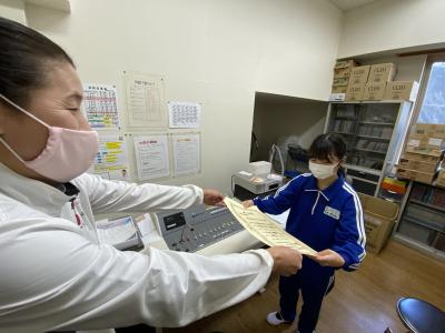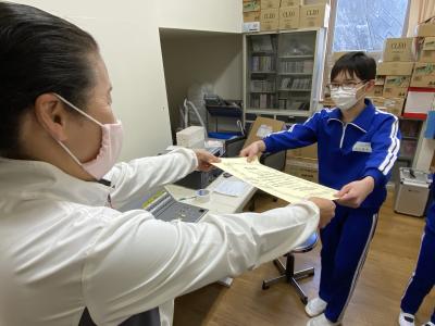 2021年2月22日 12時58分お昼の放送で,県書きぞめ展と青少年赤十字の作文の表彰を行いました。入賞された皆さんおめでとうございます。