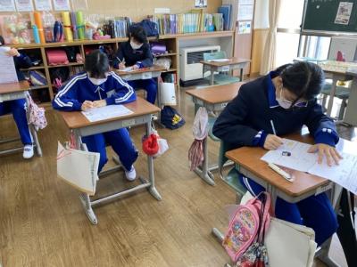 2021年3月4日 10時16分6年生算数は、まとめのテストを行っています。今年度、家庭学習と授業を関連づけた学習を行なってきましたが、どのくらい身に付いたか確認します。小学校の内容をしっかり身につけて中学校の「数学」につなげたいです。