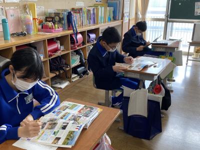 6年生社会は,最後の単元のまとめをしています。資料集を使って「世界の未来と日本の役割」について学習したことの振り返りをしていました。自分たちができる国際協力について考えています。