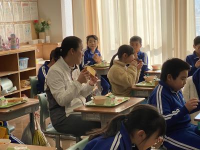 今日の校長先生と給食の学年は,3年生です。普段は元気な3年生ですが,給食のときはしっかりみんな前を向いて静かに食べています。