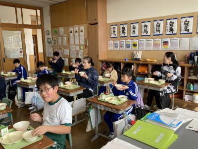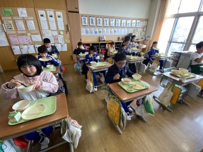 今日の「校長先生と給食」は,4年生です。みんな良い姿勢で食べています。