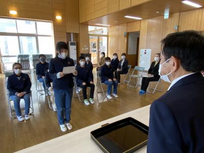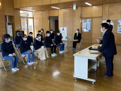 2021年3月8日 13時40分6年生は,八沢小学校同窓会長さんをお招きして「同窓会入会式」を行っています。はじめに同窓会長さんや校長先生から挨拶をいただき,入会の記念品をいただきました。6年生が入会の決意を発表して無事に終了しました。140年以上にわたる歴史のある同窓生として,八沢小学校がますます発展するよう卒業しても見守ってほしいです。