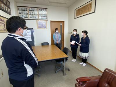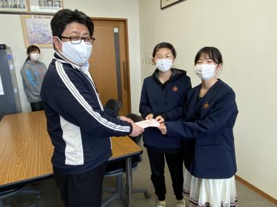 2021年3月9日 13時40分今日昼休みに,校長室で6年生代表児童が赤い羽根募金活動で集まった浄財を渡しました。社会福祉法人南相馬市社会福祉協議会の方にお越しいただき,校内で集まった募金を無事に手渡すことができました。困っている人に役立てていただき,地域の誰もが安心して暮らせるようになってほしいです。