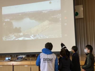 2021年3月12日 10時41分6年生理科ではドローンについて体験学習をしています。体育館にいながら、外のドローンをモニターを見ながら遠隔操作しています。色々な場面で活躍するドローンの遠隔操作を全員で体験しました。