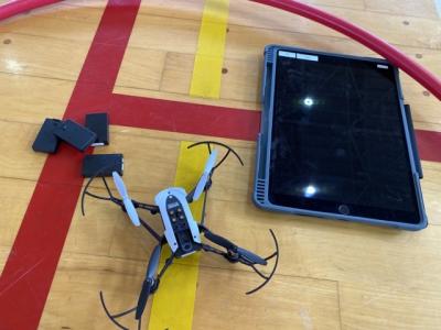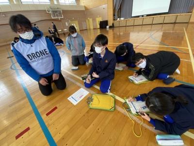 2021年3月12日 11時38分6年理科では、ドローンを使った授業をしています。最後の内容は、自分でプログラムした内容でドローンを飛ばします。バーを越えたり、マットに着地したりするたびに得点が入ります。どのようなプログラミングで、うまく飛ばせるか、試行錯誤しながら取り組んでいます。