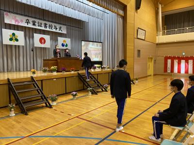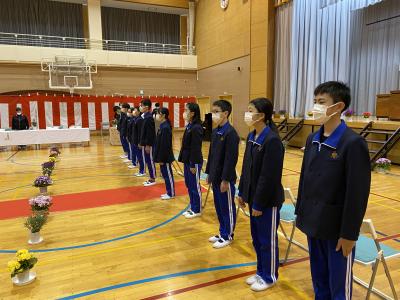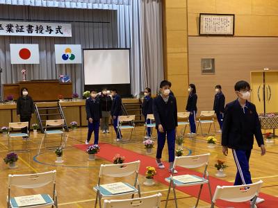 2021年3月19日 10時30分今日は,来週の卒業式に向けて入場から退場まですべてとおしての練習を行いました。今までの練習の成果が出ており,一つ一つの動きに自信がありました。練習後の会場の微調整もみんなで行いました。来週の本番が楽しみです。