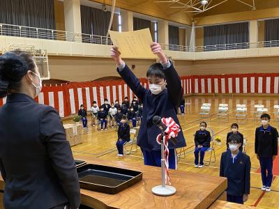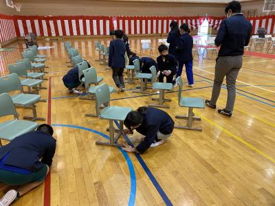 今日は,来週の卒業式に向けて入場から退場まですべてとおしての練習を行いました。今までの練習の成果が出ており,一つ一つの動きに自信がありました。練習後の会場の微調整もみんなで行いました。来週の本番が楽しみです。